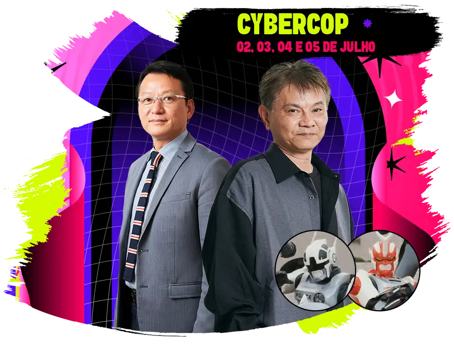 O Anime Friends 2026 confirma Tomonori Yoshida e Tom Saeba, intérpretes de Júpiter e Saturno em Cybercop – Os Policiais do Futuro.