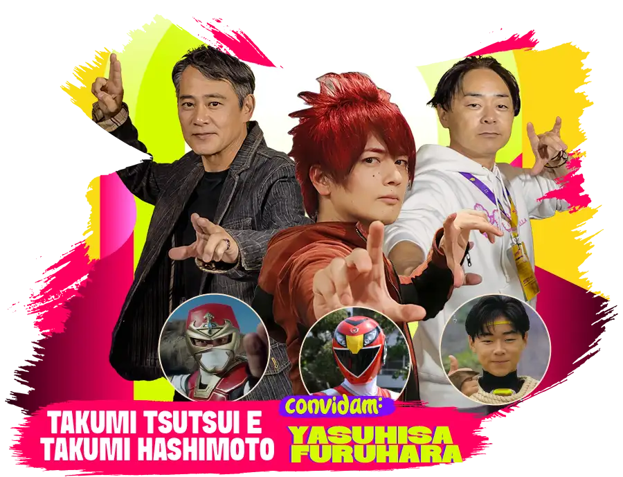 E o portal do tokusatsu continua trazendo encontros históricos: o Anime Friends 2026 também marcará a presença inédita no Brasil do elenco principal de Cybercop – Os Policiais do Futuro, com os atores Tomonori Yoshida, Tom Saeba, Ryoma Sasaki e Mika Chiba.